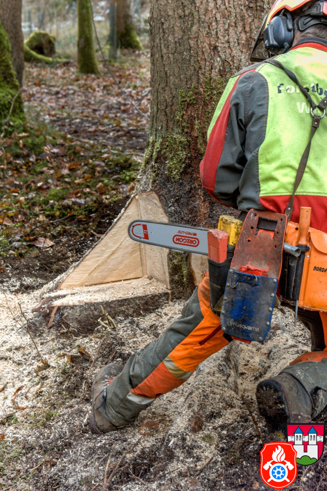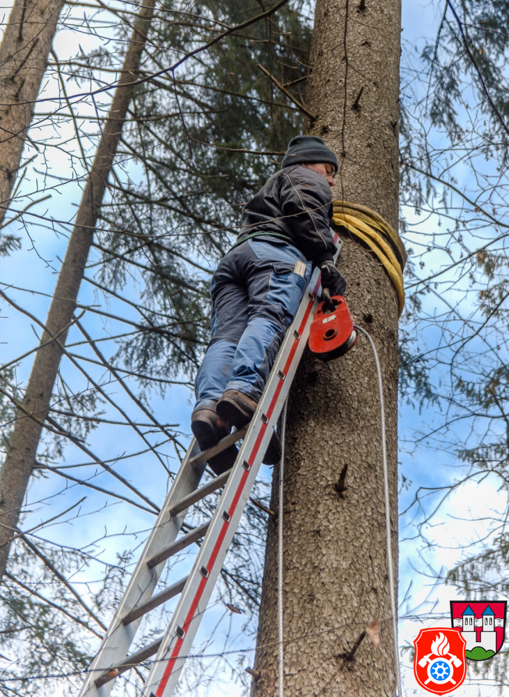 Der neue Baum ist nicht nur gefunden, sondern mit tatkräftiger Unterstützung, Umsicht und Geschick von Vereinsmitgliedern des "Burschenverein Rott" und der "Freiwilligen Feuerwehr Rott" bereits einen Tag nach Neujahr umgelegt worden. Dieser stattliche Baum misst beeindruckende 30 Meter und wurde dankenswerte Weise von der Fa. Franz Ametsbichler gestiftet - der auch allen Helfern an diesem kalten Tag eine stärkende Brotzeit spendierte.