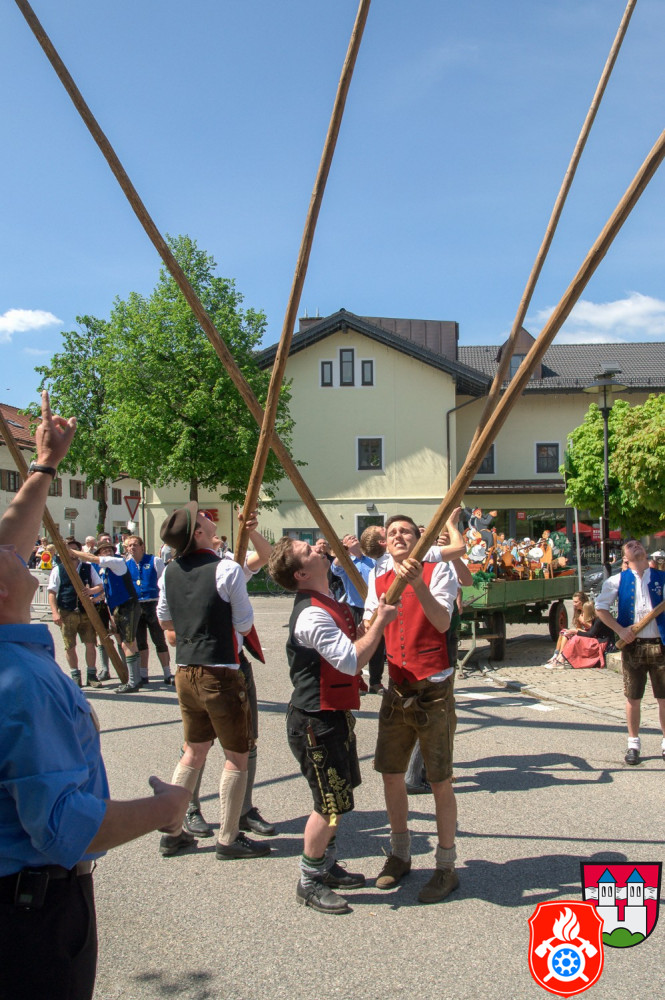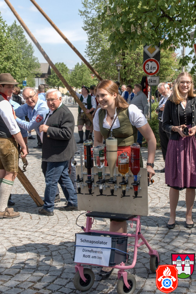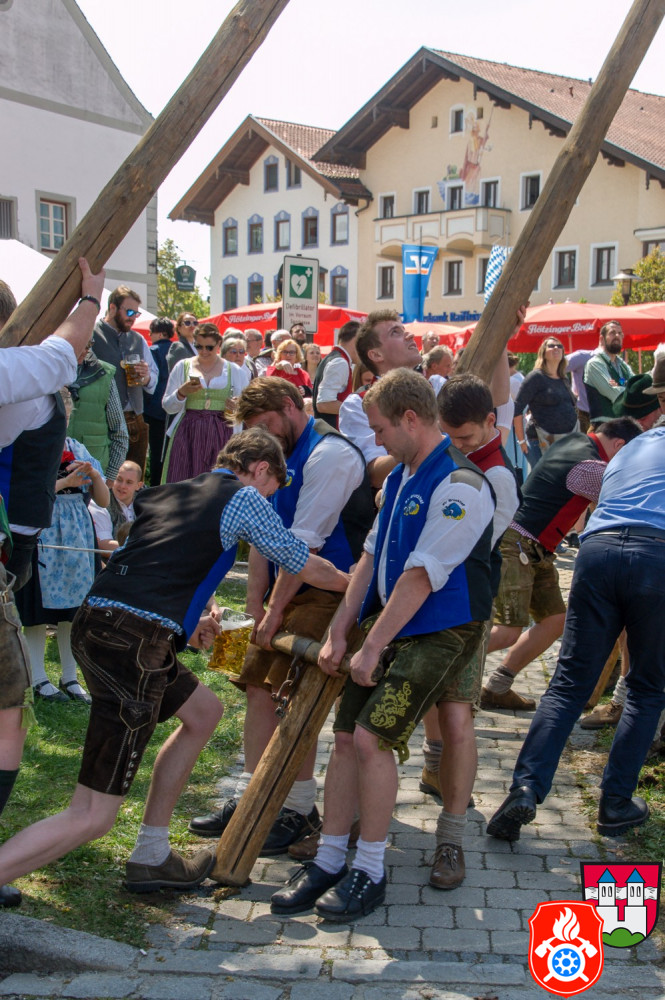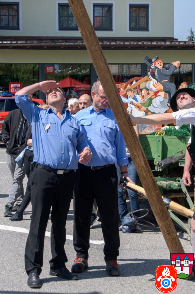 Wunderschönes, warmes Wetter und ein Massenandrang an Besucher - so viele, dass wir sie gar nicht mal ansatzweise zählen konnten. Die Temperaturen zogen einfach jeden an den durch Feuerwehr und Burschen errichteten Festplatz. Los ging es gegen Mittag mit dem feierlichen Einzug des Baumes von der Schule in den Ortskern. Gezogen ganz traditionell vom Pferdegespann wurde der Baum von den kräftigen Feuerwehrlern und Burschen um Kommandant Manfred Lunghammer begleitet. Mit geballter Manneskraft wurde der Koloss gemeinsam in die Höhe gestemmt, fest verankert und die aufwendigen, einzigartigen Zunftschilder montiert. Begleitet von der Rotter Blasmusik sowie Flötziger Bier wurde am Festtag noch lange bis in die Abendstunden gefeiert.