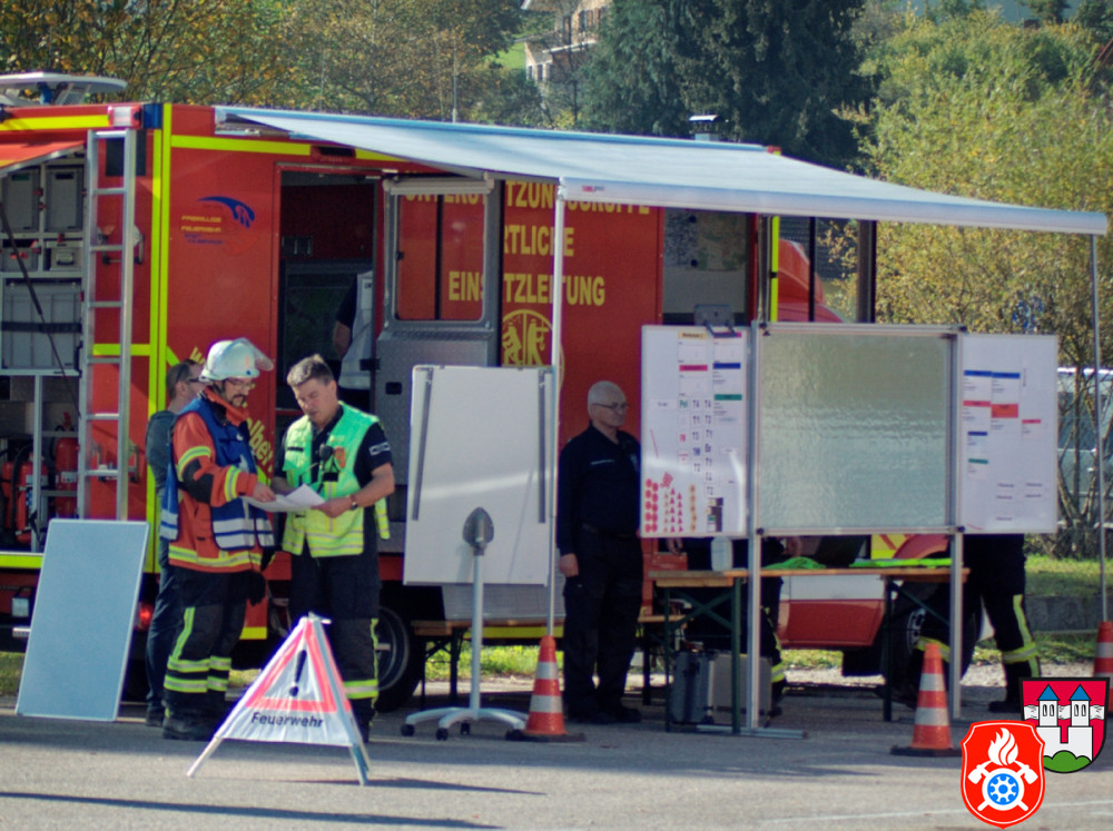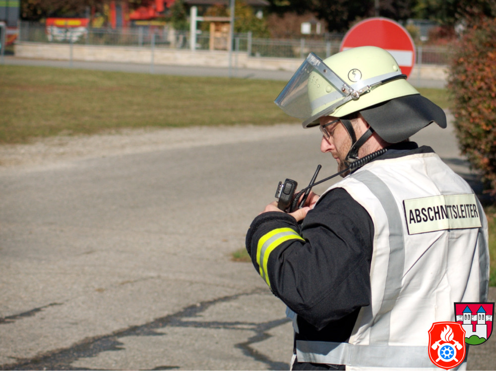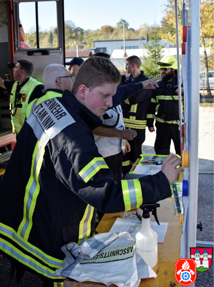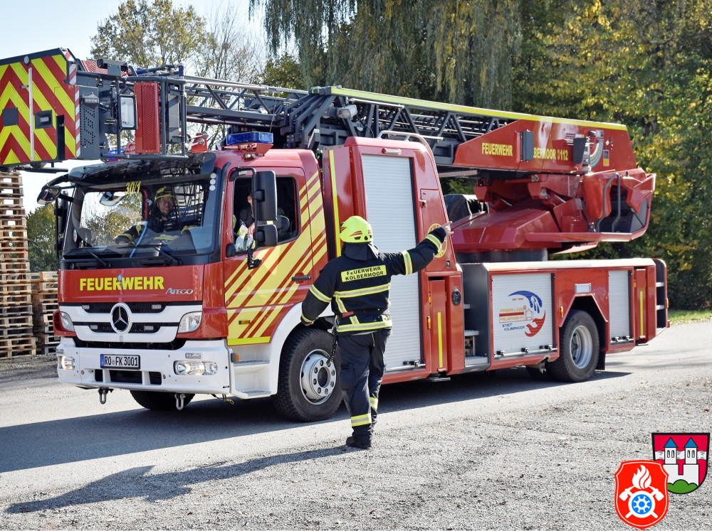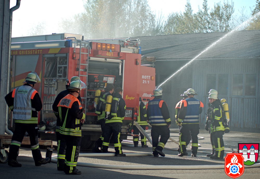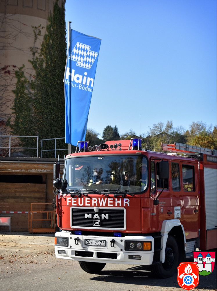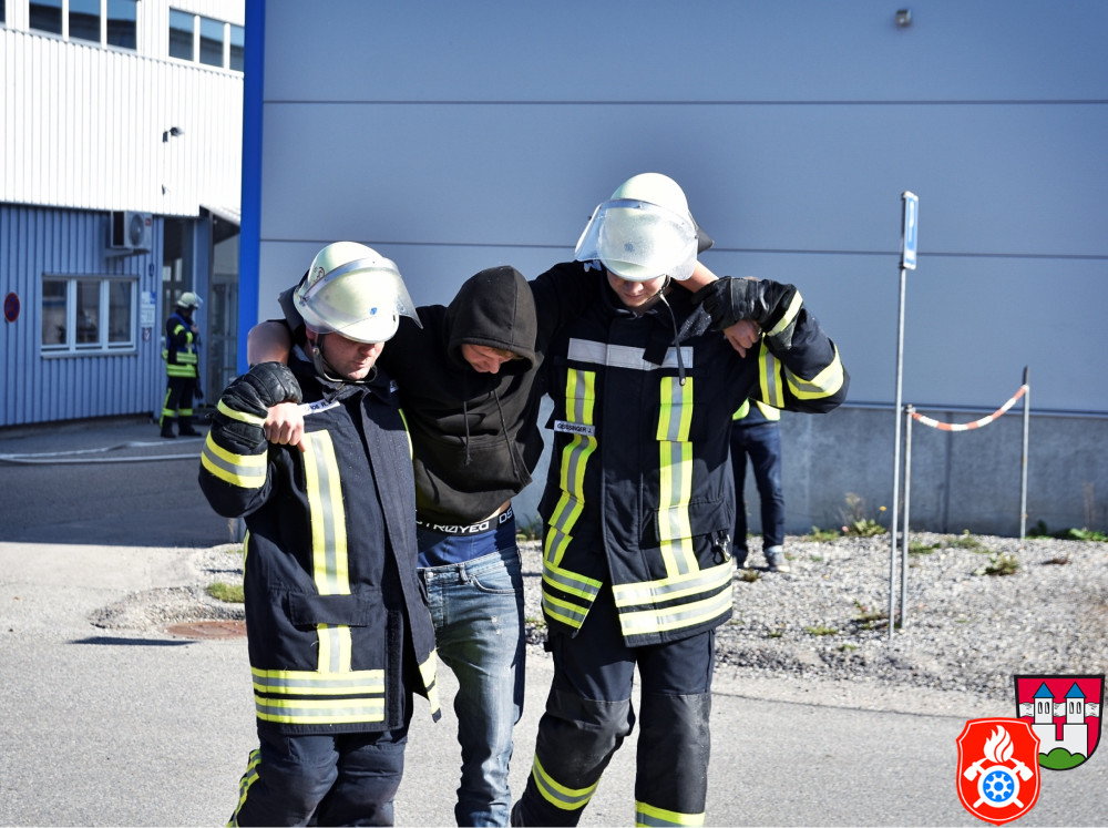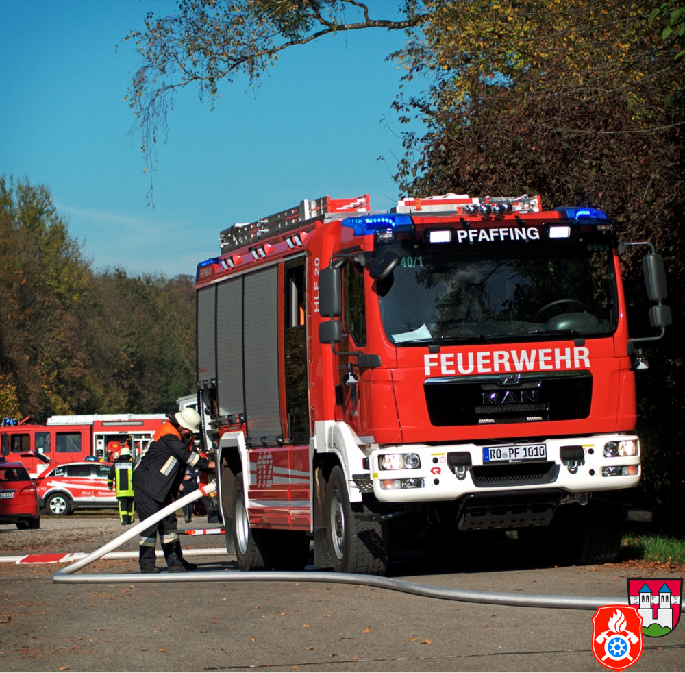 Ein großes Aufgebot an Einsatzkräften aus den Landkreisen Rosenheim und Ebersberg zeichnete am Samstag, den 26.10.2019, das Bild des Rotter Ortsrandes - darunter Feuerwehr, Rettungsdienst und Vertreter des THW. Gemeinsam probte man auf dem Gelände eines holzverarbeitenden Betriebs den Ernstfall.