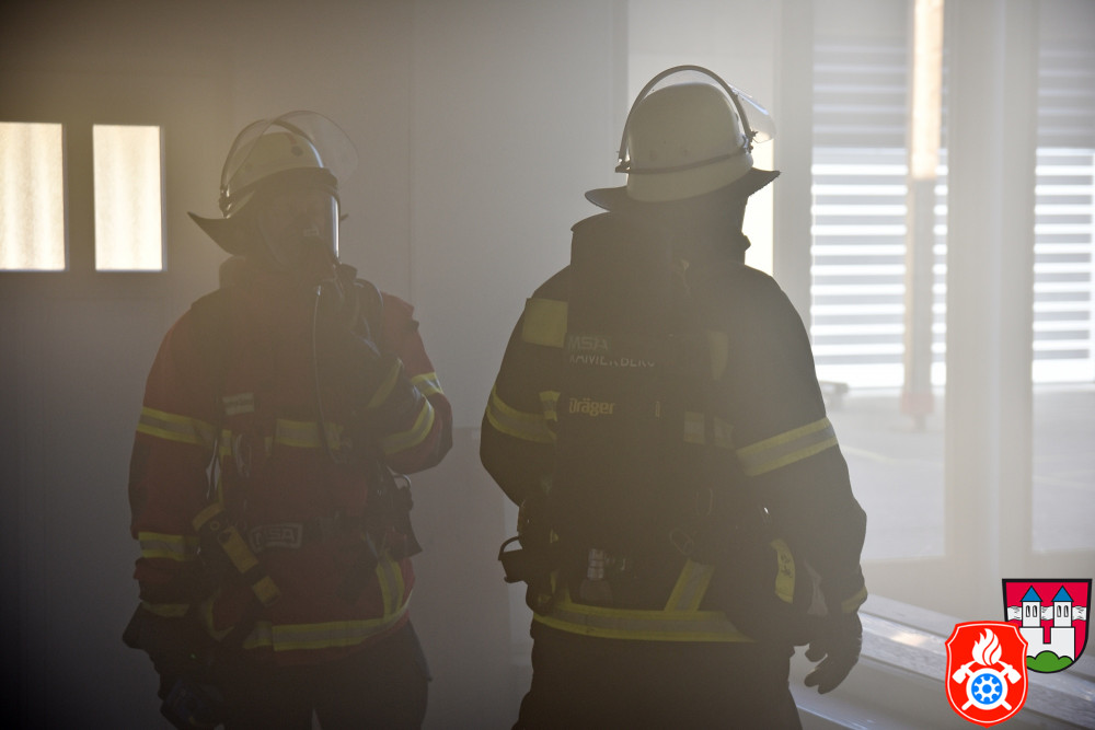 Bei Ankunft wurde das Meldebild schnell bestätigt: Starke Rauchentwicklung in zwei Gebäuden, zudem mehrere vermisste Personen. Gleich nach dem Eintreffen am Einsatzort wurde dieser aufgrund der Größe in insgesamt fünf Abschnitte eingeteilt - darunter der Bereich Bereitstellungsraum, Brandabschnitt 1 Lagerhalle, Brandabschnitt 2 Trockenlager, Abschnitt 3 Endfertigung sowie die Verletzten-Sammelstelle. An den vom Brand betroffenen Produktionshallen wurde durch die Feuerwehren eine Riegelstellung errichtet, um ein Übergreifen der Flammen auf die anderen Gebäude zu verhindern. Feuerwehrübergreifend wurde die Wasserversorgung sowie dessen Transport und Abgabe sichergestellt. Zeitgleich rüsteten sich mehrere Atemschutztrupps aus und durchsuchten die Räume, welche stark verraucht wurden und die Sicht dadurch ziemlich eingeschränkt war, nach verletzten und vermissten Personen.