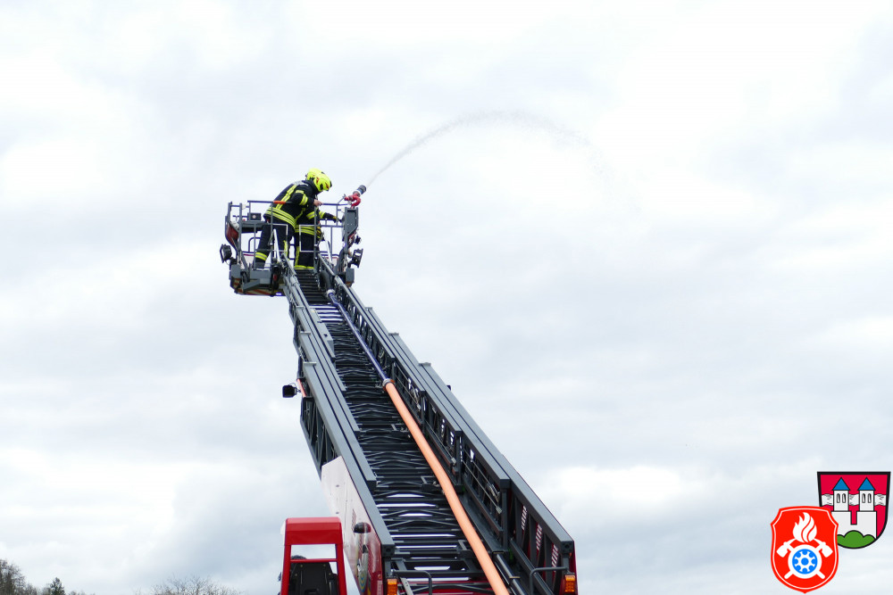 Die Ausbildung wurde von der Firma Rosenbauer durchgeführt, bei der wir die Drehleiter gekauft haben. Nach kurzer theoretischer Ausbildung wurde gleich praxisbezogen am Hubrettungsgerät geübt.