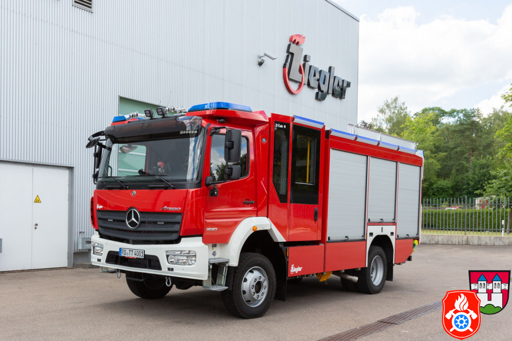 Das Feuerwehrfahrzeug, aufgebaut auf einem Mercedes ATEGO 1630 Fahrgestell, wurde von der Firma Ziegler aus Giengen an der Brenz gefertigt. Bei der Abholung am Werk wurden sechs unserer Führungskräfte explizit auf die hochmoderne Technik, darunter vor Allem Pumpen- und Elektrotechnik, des Fahrzeugs geschult. HLF steht übrigens für Hilfeleistungs-Löschfahrzeug - die 20 steht für die Nennförderleistung der im Fahrzeugheck fest eingebauten Feuerlöschkreiselpumpe. Diese liefert bei 10 bar Förderdruck 2.000 Liter Wasser in der Minute durch die heckseitigen Wasserabgänge. Zusätzlich verfügt dieses Fahrzeug über einen 2500 Liter fassenden Wassertank sowie einen separaten 200 Liter Tank für Schaummittel.
