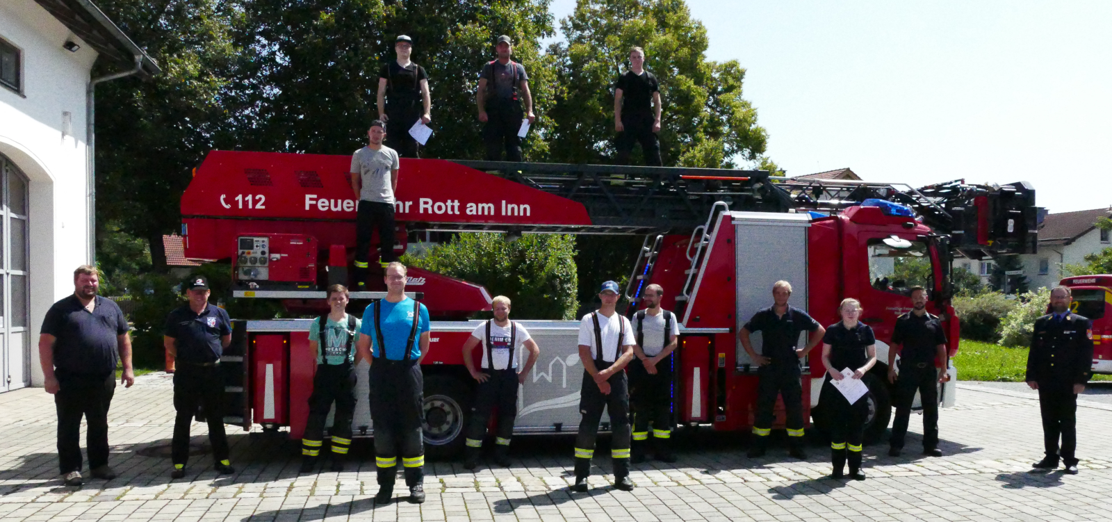 Am Mittwoch, 28. Juli 2021, hat wieder eine Gruppe der Freiwilligen Feuerwehr Rott a. Inn die Leistungsprüfung „Die Gruppe im Löscheinsatz“ mit Erfolg bestanden. Unter den kritischen Blicken der Schiedsrichter Christian Thomas, Robert Rainer und Horst Naundorf mussten die Aktiven den Löschaufbau in einer Zeit von maximal 190 Sekunden bewältigen. Weitere Aufgaben waren das Kuppeln einer Saugleitung sowie die Durchführung verschiedener Knoten und Stiche.