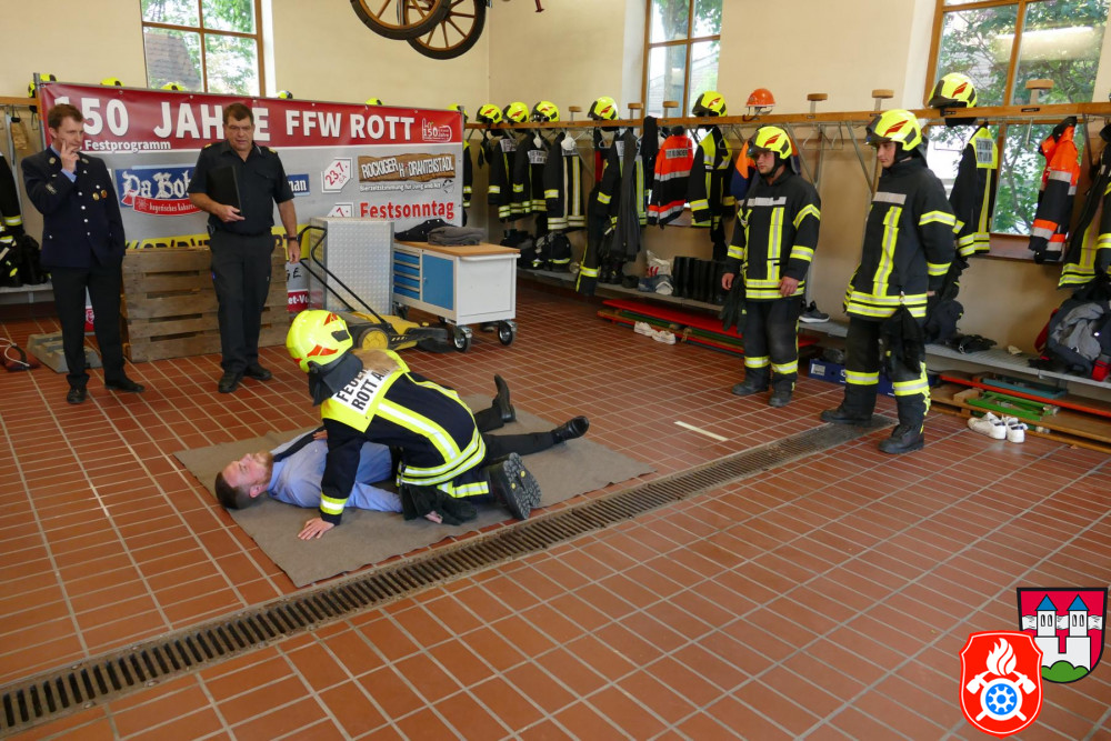 Zu den praktisch geprüften Fertig- und Fähigkeiten zählten z. B. die Inbetriebnahme von Unterflur- und Oberflurhydrant, die Erstversorung von Verletzten, die verschiedenen Konten und Stiche im Feuerwehrdienst, die richtige Installation von Schlauchbrücken, das Bedienen von Hand- sowie Fahrzeugfunkgerät, die unterschiedlichen Feuerlöscher und deren Brandklassen, etc.