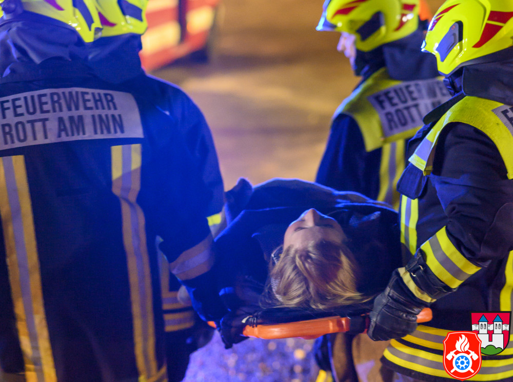 Es wurden 3 PKWs im Bereich des Sägewerks Ametsbichler so präpariert, dass es nach einen folgenschweren Verkehrsunfall aussah. Vier Junge Feuerwehrler wurden mit Schminke als Verletzte in den Autos dargestellt um den Einsatz sehr realitätsnahe zu gestalten. Die Verletzen wurden durch den First Responder Rott versorgt und die PKWs wurden fachmännisch zur Patientenrettung zerlegt. Nach der Übung wurde die gute Zusammenarbeit besprochen und der ein oder andere Hinweis zur Optimierung eines Einsatzes gegeben.