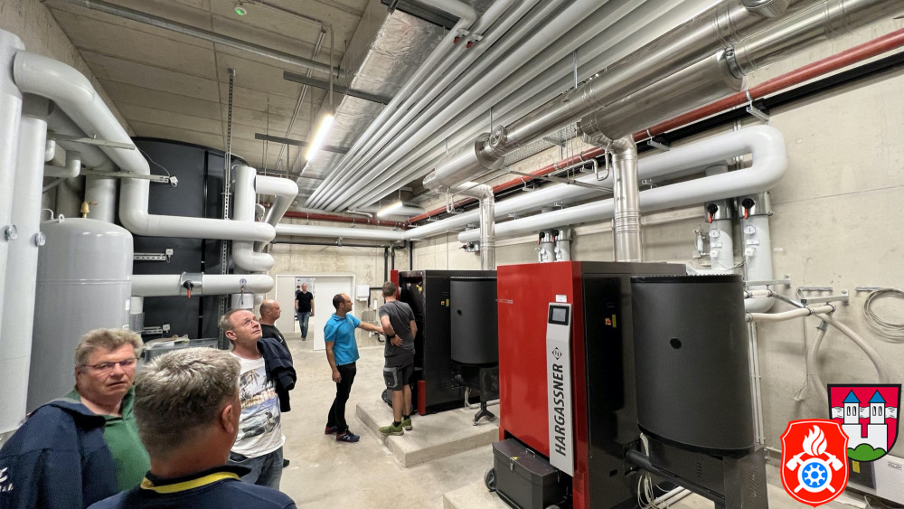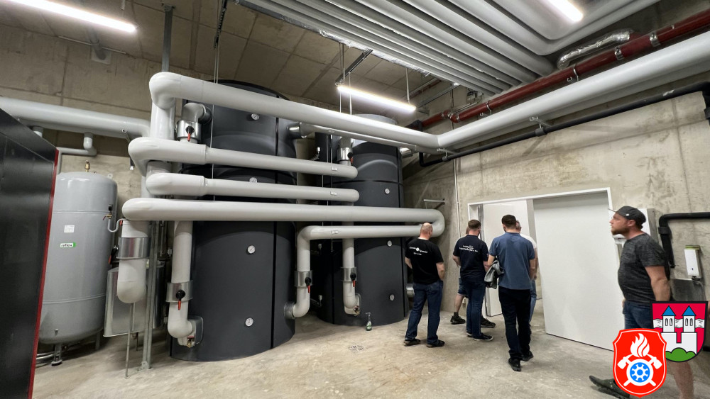 Über den Kinderhort ging es anschließend über die Treppenhäuser durch die Stockwerke und Klassenzimmer. Fluchtwege und Rauchabzüge wurden besichtigt und eingeprägt. Über die Nordseite bewegten wir uns in das Kellergeschoss, wo wir in den Facharbeitsräumen z. B. die Positionen der Gefahrgutschränke kennen gelernt haben. Angekommen im Technikkomplex machten wir uns einen Überblick über sämtliche Medien wie die elektrische Energiezufuhr, die Heizungs- und Lüftungsanlage, den Pelletsbunker, die Fettabscheider, den Fahrstuhl, etc.