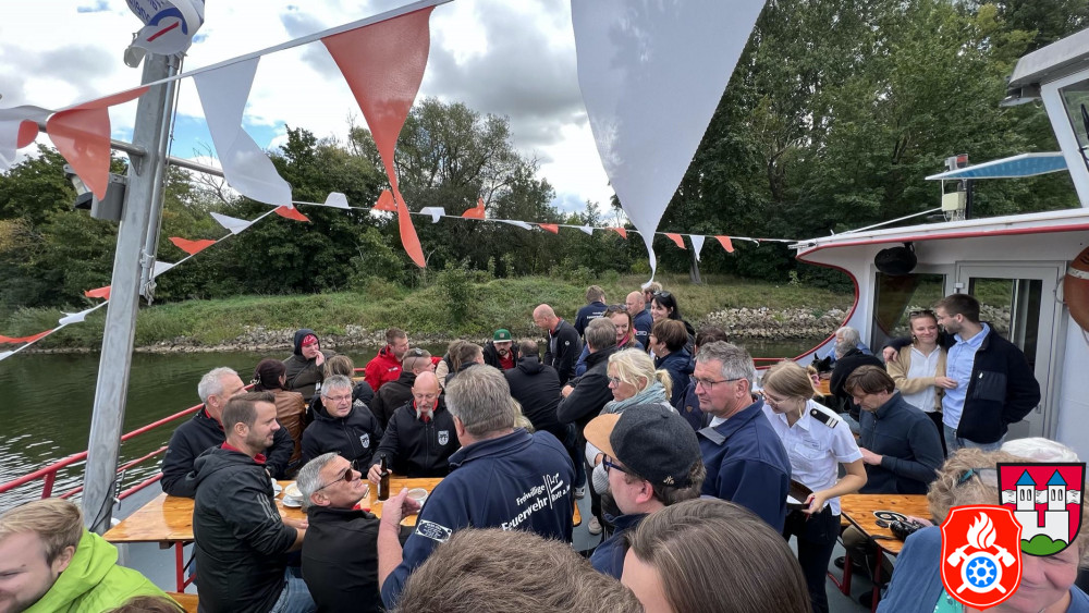 Am 23. und 24. September war es wieder soweit - unser jährlicher Feuerwehrausflug stand an. Dieses Mal machten wir uns gemeinsam auf den Weg nach Unterfranken. Nach einer entspannten Busfahrt erreichten wir unser erstes Ziel: Die Schiffsanlegestelle in Volkach. An Bord des Schiffes "Undine" machten wir zur Einleitung unseres Ausfluges eine Schöne Rundfahrt auf der Mainschleife zwischen fränkischen Weinbergen.