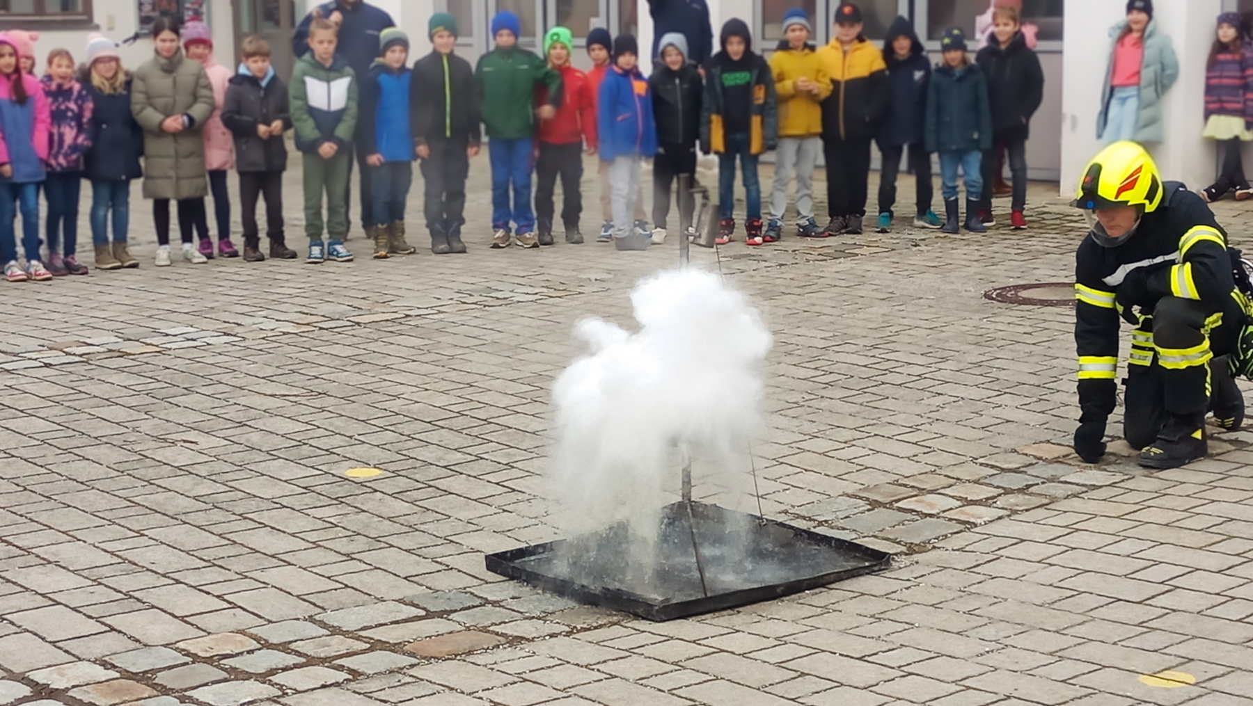 Die beiden dritten Klassen der quasi benachbarten Grund- und Mittelschule hatten am 1. März Gelegenheit, der Feuerwehr und Ihre Ausrüstung einmal ganz nahe kommen zu dürfen. Nachdem die Kinder schon im Unterricht über die Aufgaben und die W-Fragen beim Absetzen eines Notrufs gelernt haben, machte Ihnen Kommandant Manfred Lunghammer anschaulich, was nach dem Notruf passiert und eine Alarmierung abläuft.