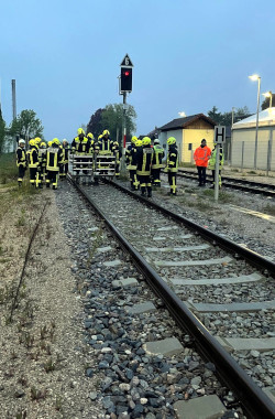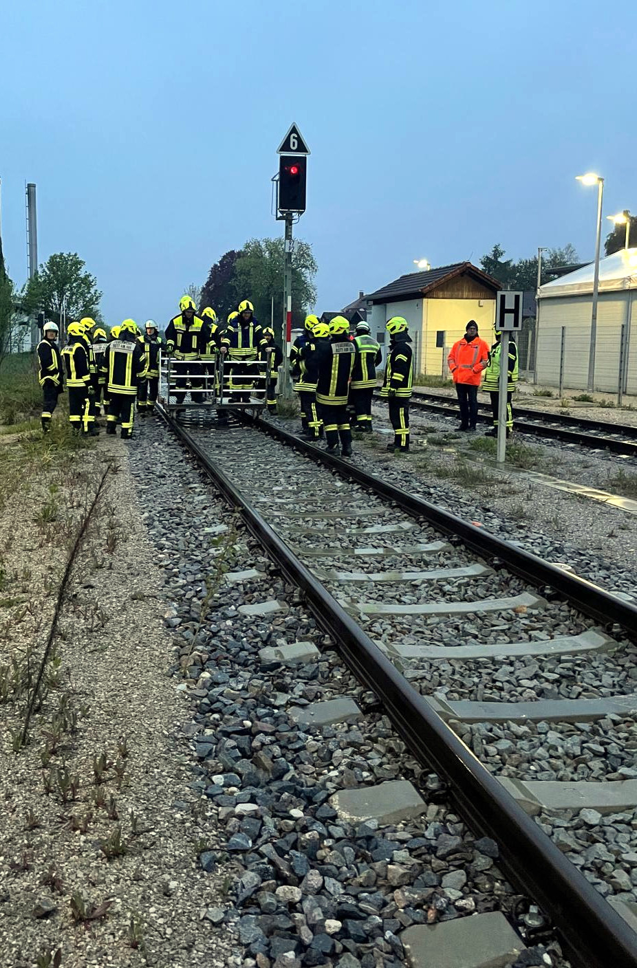 Zusammen mit der Feuerwehr Attel/Reitmehring und dem DB-Notfallmanager Mayer konnten wir den Bahnrettungssatz beüben. Der Notfallmanager zeigte uns das sogenannte Sperrfax, mit dem Sichergestellt wird, dass ein Teilabschnitt des Gleises von der DB Netz gesperrt ist. So war auch an diesem Abend das Gleis 2 am Rotter Bahnhof für den Zugverkehr gesperrt, da wir durch unseren beruflich tätigen Triebfahrzeugführer und Ausbilder Alfred Zimpel, einen guten Draht zur DB haben.