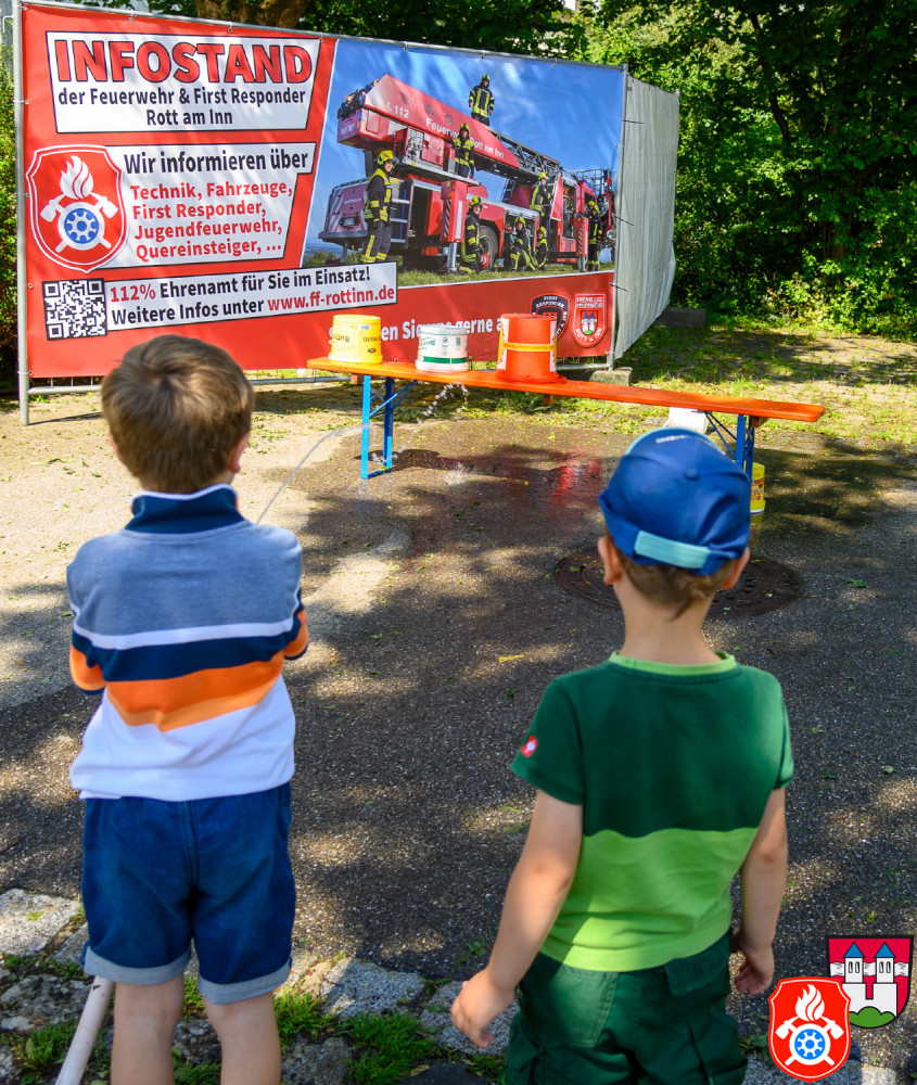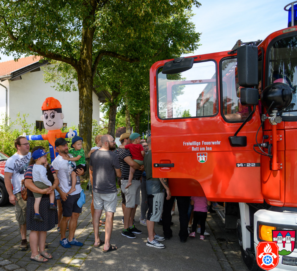 Bei bestem Sommerwetter war der Biergarten, das Zelt und die Fahrzeughalle von vielen Besuchern aus Rott und Umgebung gefüllt. Dieses Jahr gab es auch gleich ein paar neue Hingucker - unsere Liegestühle und Sonnenschirme mit aufgedruckten Feuerwehr-Logo erfreuten sich großer Beliebtheit. Für die kleinen Besucher wurde auch etwas geboten. Rundfahrten im Feuerwehrauto, Kinderschminken, kleine Löschübungen und zum Toben und Spielen eine Feuerwehr-Hüpfburg.