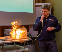 Jugendliche, die dieses Jahr im Juni gefirmt werden, besuchten im Rahmen der Projektarbeit die Feuerwehr zusammen mit der Gemeindereferentin Elvira Hillenbrand. Neben den Kernaufgaben der Feuerwehr und deren Einsatzvielfalt, konnten das Feuerwehrhaus, nebst Trainings-Parcours, Fahrzeuge und Jugendraum besichtigt werden. Neben einem besonderen Blick in das Innenleben eines Pulverlöschers, wurde anhand eines kleinen Experimentes die Wirkung einer Staubexplosion anschaulich simuliert.