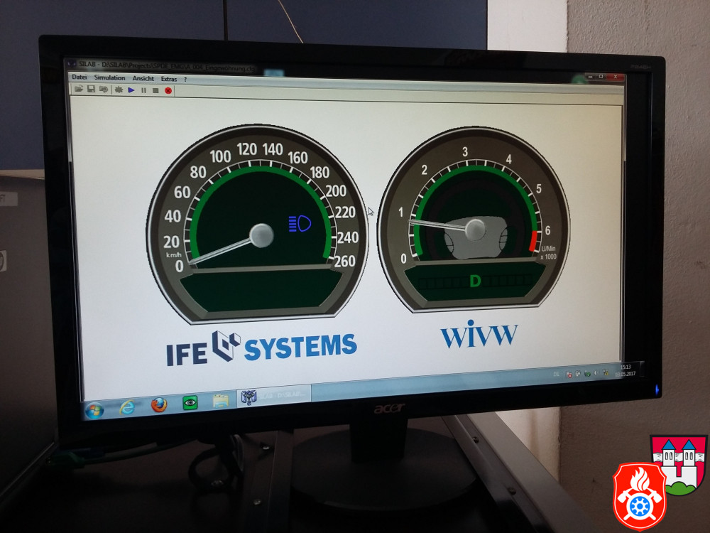 Nach einer Auffrischung der Rechtsgrundlagen für Feuerwehren im Straßenverkehr konnten am Simulator verschiedene Szenarien durchgespielt werden. Mehrere Computer erstellten eine Virtuelle Stadt, durch welche man mit einem Einsatzfahrzeug manövrieren musste.