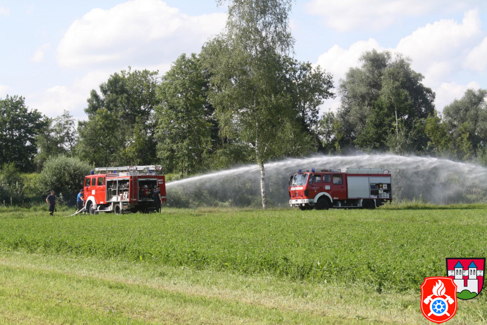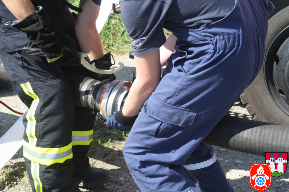 Als Höhepunkt der Veranstaltung zählt wie immer unsere Ausfahrt zum Spritzen. In der Nähe des Rotter Ausees haben wir mit unserem Fahrzeug "Florian Rott 44/1" mittels einer Saugleitung mit Schwimmsauger das Wasser über eine Fortleitung zum Verteiler geführt. Von dort aus gaben wir das Wasser über drei C-Leitungen ab.