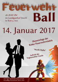 Am 14.01.2017 wurde in Rott wieder richtig gefeiert, denn es fand wieder der alljährliche und traditionelle Feuerwehrball der Freiwilligen Feuerwehr Rott am Inn im Saal des Landgasthof Stechls statt. Dieses Mal waren der Verein besonders stolz darauf, dass alleine über 150 Reservierungen eingegangen sind und letztendlich über 200 Personen bis in die frühen Morgenstunden zu der Musik der Band „Musik Mafia“ getanzt haben. Zur späteren Stunde besuchte dann auch noch die Vogtareuther Faschingsgilde mit Ihrem Prinzenpaar den vollen Saal des „Stechls“ und führten ihre einstudierten Tänze vor.