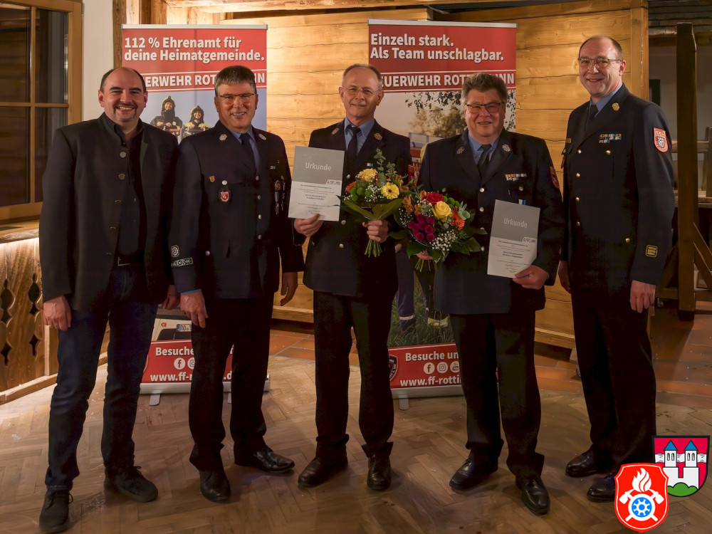 Abschließend hoben Bürgermeister Daniel Wendrock und Kreisbrandinspektor Stephan Hangl die Bedeutung der Feuerwehr als eine der tragenden Säulen innerhalb von Gesellschaft und Gemeinde hervor. Sie betonten das gelebte Ehrenamt und den Willen, einen persönlichen Beitrag für das Gemeinwohl zu leisten. Es wurde darüber hinaus betont, dass gerade diese langjährige Verbundenheit mit der Gemeinde das Fundament der Freiwilligen Feuerwehr Rott a. Inn ist und sie zu einem Vorbild für die jüngeren Generationen macht. Deswegen darf optimistisch in die Zukunft geblickt werden: Mit einer motivierten Mannschaft, engagiertem Nachwuchs und starkem Rückhalt aus der Bevölkerung sieht sich die Freiwillige Feuerwehr Rott a. Inn auch für die kommenden Jahre gut aufgestellt.