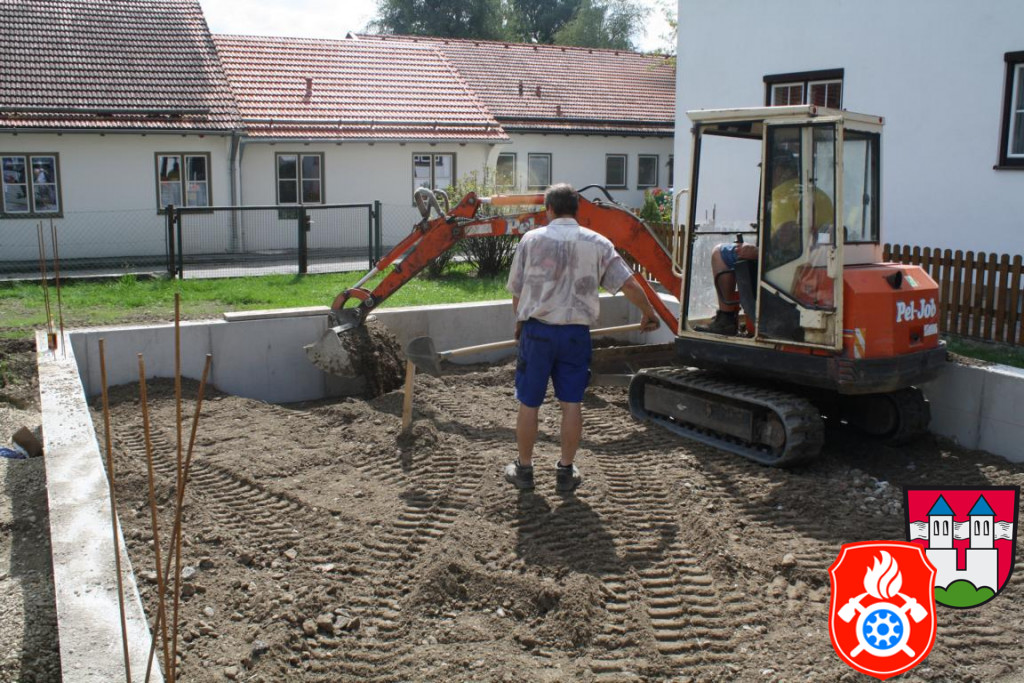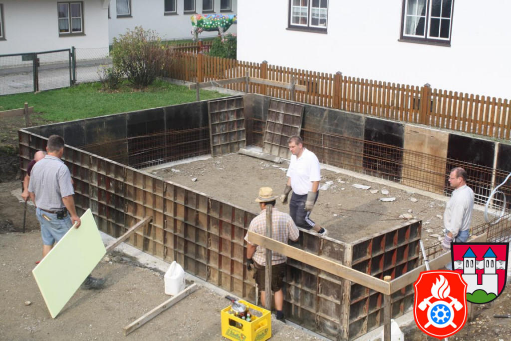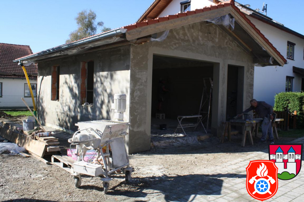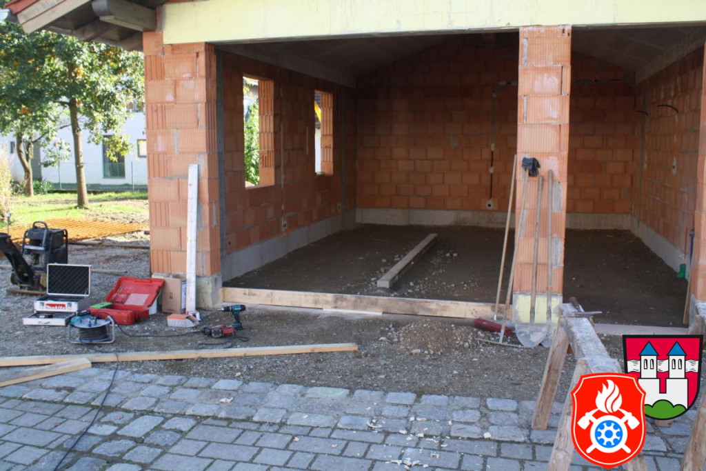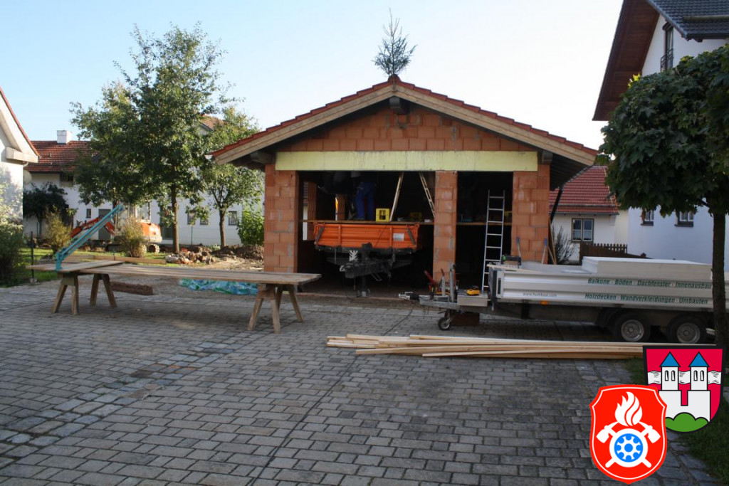 Sommer - Herbst 2012 wurde wegen der Anschaffung eines neuen First Responder Einsatzfahrzeuges eine Garage auf dem Gemeindegrundstück neben dem Feuerwehrhaus errichtet.