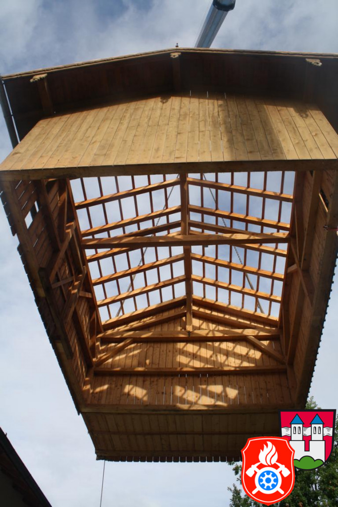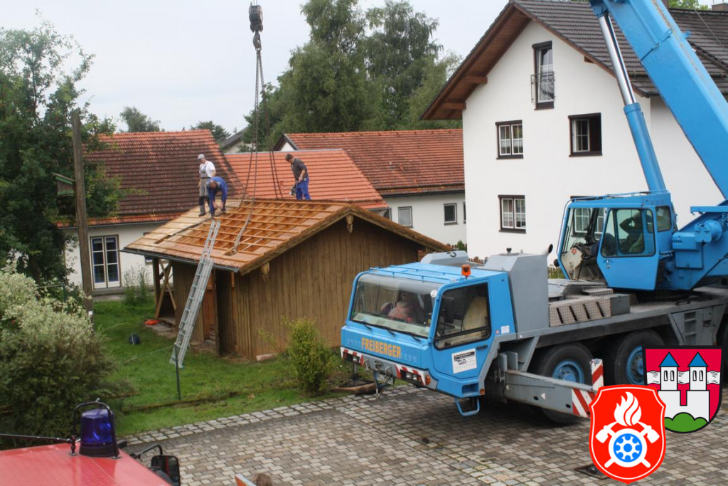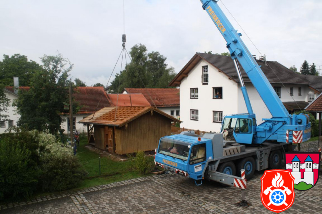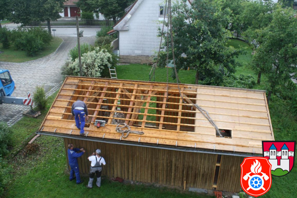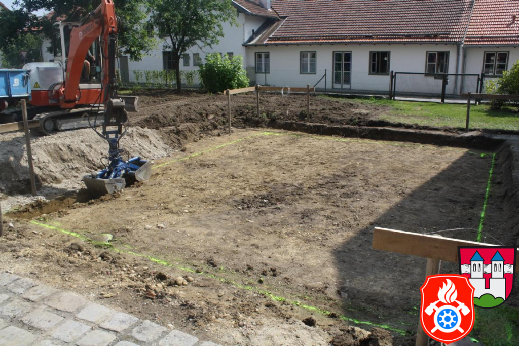 Sommer - Herbst 2012 wurde wegen der Anschaffung eines neuen First Responder Einsatzfahrzeuges eine Garage auf dem Gemeindegrundstück neben dem Feuerwehrhaus errichtet.