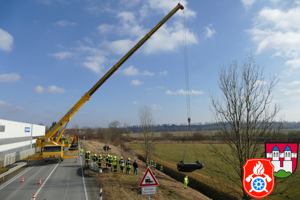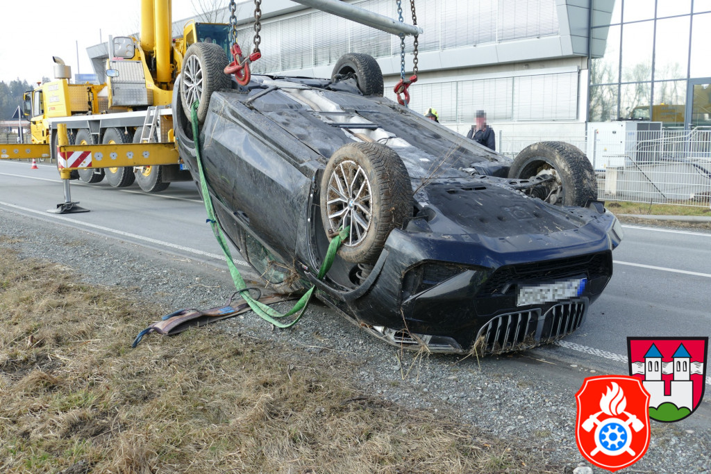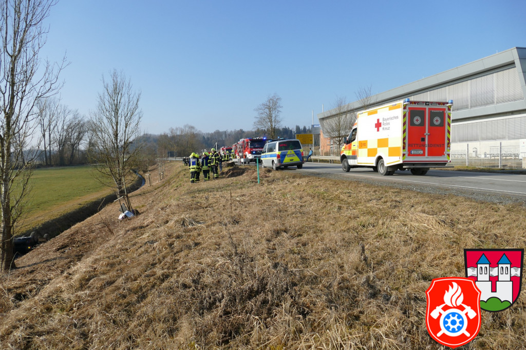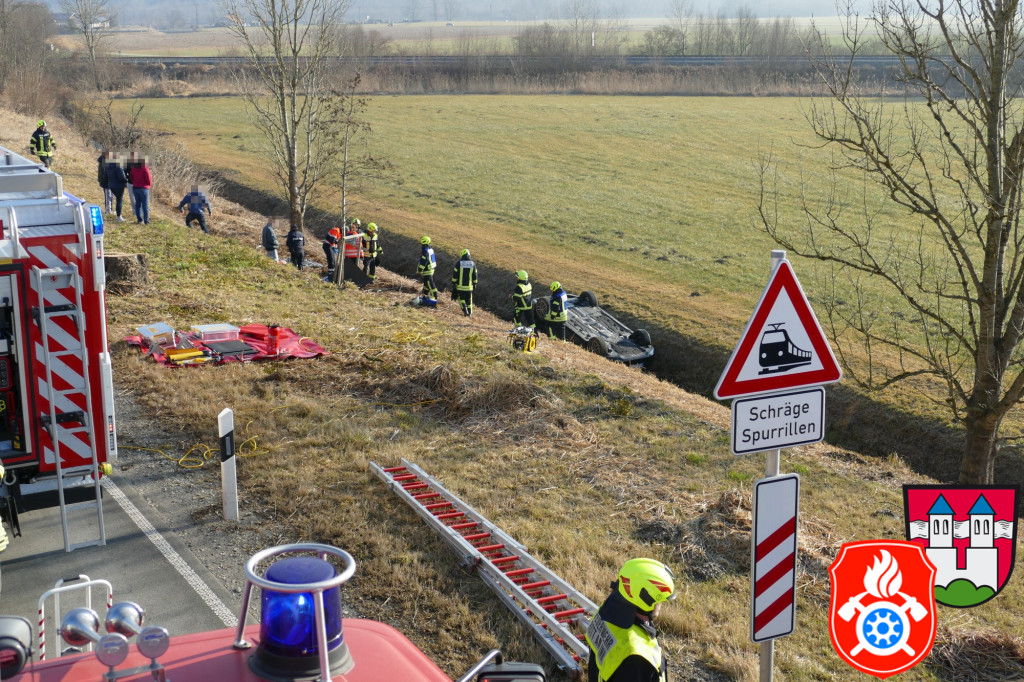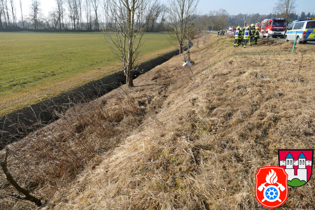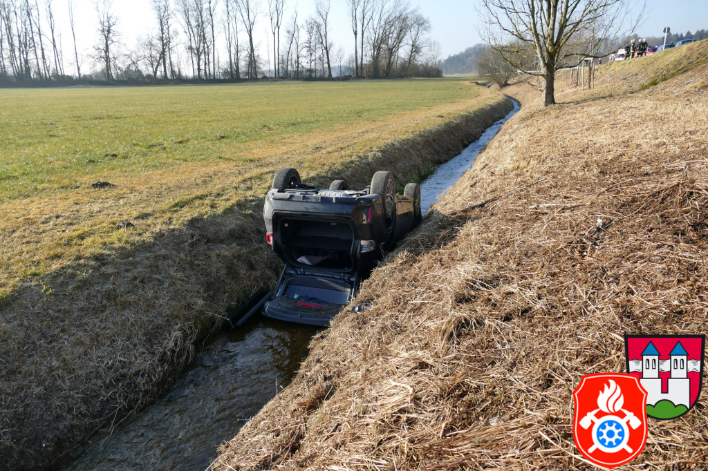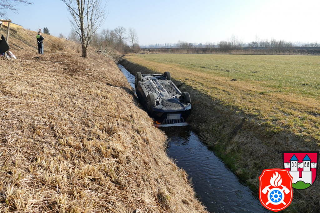 PKW kam von der Straße ab und landete Kopfüber im Graben.