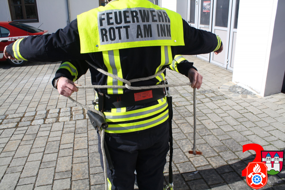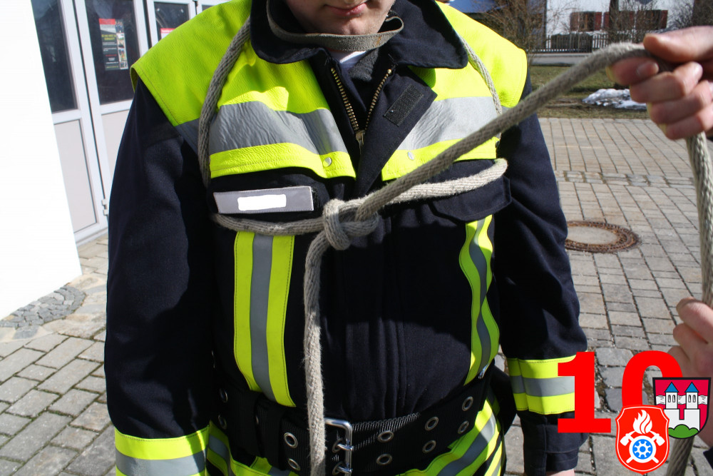 Der Brustbund wird bei der Feuerwehr verwendet, um Personen gegen Absturz zu sichern, z.B. wenn eine zu rettende Person über eine Leiter herabsteigt. Wichtig ist dabei, daß das Seil immer stramm gehalten wird, damit die Person nicht frei fällt. Dies nennt man dann statisches Halten. |