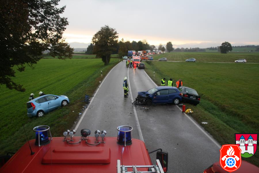 Kurzbericht der Feuerwehr: Am Freitag den 21.10.2016 hat sich gegen 7.40 Uhr ein Verkehrsunfall auf der B15 bei Rott a. Inn mit drei PKW ereignet. Es gab hierbei drei leichtverletzte Personen. Die Freiwillige Feuerwehr Rott a. Inn wurde zur Erstversorgung, Verkehrsregelung und Bergung der Fahrzeuge alarmiert. Zusätzlich vor Ort war der Straßenbaulastträger. Während der Fahrzeugbergung war die B15 komplett gesperrt, später dann nur noch halbseitig. Die Feuerwehr kümmerte sich im Anschluss noch um die Fahrbahnreinigung. Bericht auf der Wasserburger Stimme: http://www.wasserburger-stimme.de/schlagzeilen/schwerer-unfall-am-morgen-mit-drei-pkw/2016/10/21/ Bericht auf rosenheim24: http://www.rosenheim24.de/rosenheim/rosenheim-land/schechen-ort51099/schechen-vollsperrung-wegen-unfall-zwischen-schechen-rott-6866722.html |