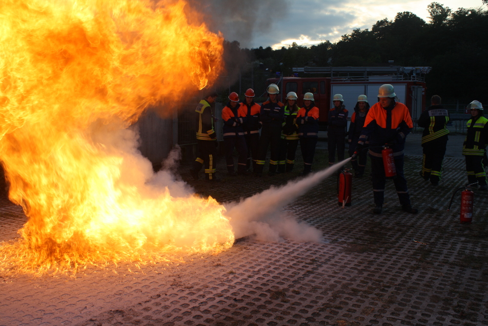 Feuerwehrhaus um dort die Disziplinen für das Abzeichen „Leistungsspange der Deutschen Jugendfeuerwehr“