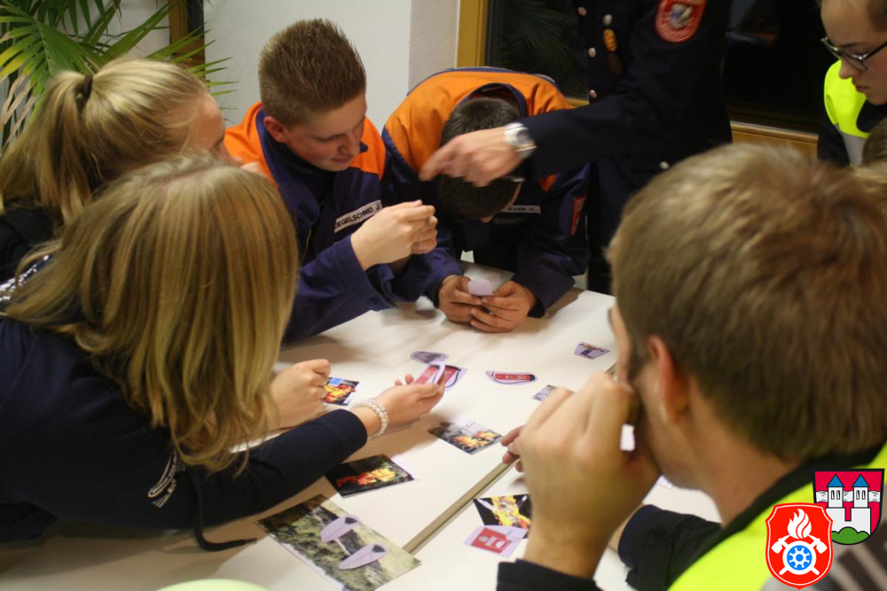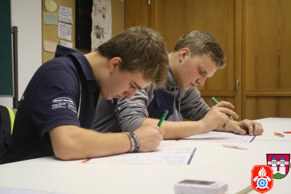 Am Anfang wurde von jedem einzelnen das theoretische Wissen zum Thema „Brennen und Löschen“ abgefragt. Danach mussten wir in der Gruppe Zusatzfragen und Aufgaben erledigen. Hierzu zählte zum Beispiel ein Löschaufbau zur Brandbekämpfung eines Flächenbrandes. Außerdem mussten wir erklären, wann und wo man welchen Feuerlöscher oder andere Kleinlöschgeräte verwendet. Von den 13 Jugendfeuerwehrlern absolvierten zwei die Stufe 1 (Bronze), einer die Stufe 2 (Silber), drei die Stufe 3 (Gold) und sieben die Stufe 4 (Gold-Blau). Die Abzeichen wurden von unserem Kreisbrandinspektor Georg Wimmer und unserem Kreisjugendwart Manuel Pöhmerer übergeben. Unsere Jugendwarte und Kommandant Manfred Lunghammer gratulierten uns ebenfalls. Wir ließen den Abend mit einer Brotzeit ausklingen und bedanken uns bei der Freiwilligen Feuerwehr Amerang für die Einladung!