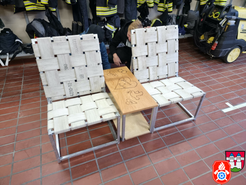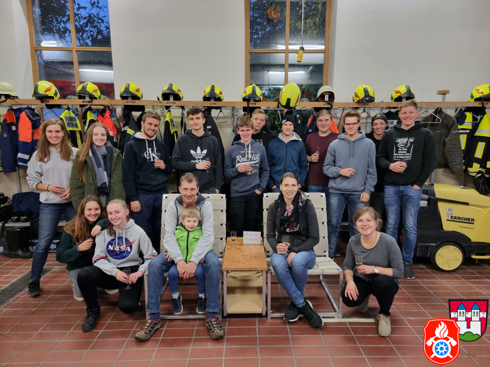 Natürlich haben wir uns auch dazu ein besonderes Geschenk überlegt und viel Zeit dafür investiert. Für die Geschenkübergabe haben wir die beiden mit Sohn zu einem späteren Zeitpunkt zu uns ins Feuerwehrhaus eingeladen. Johanna hatte für uns noch leckeren Kuchen dabei. Es war somit für beide Seiten ein voller Erfolg.