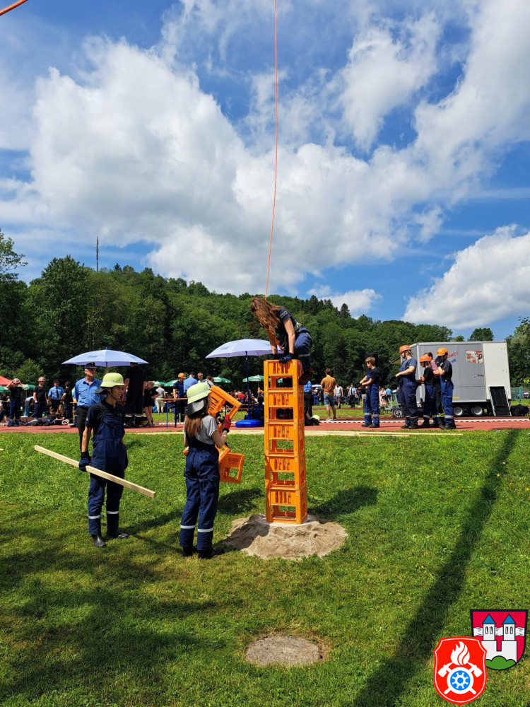Zum Beispiel mussten wir gemeinsam mit einer anderen Jugendgruppe einen Wassertransport über unsere Köpfe nach hinten machen. Dabei stellten wir einen neuen Rekord auf. Andere Aufgaben waren Gummistiefel-Weitwurf, Dart, Schlauch aufrollen und kegeln, unseren Jugendwart mit nassen Schwämmen bewerfen, verschiedene Knoten und noch viele weitere. Für unsere Leistungen ergatterten wir den 14. Platz. Da es für uns die erste Teilnahme am Kreisjugendfeuerwehrtages war sind wir mit unserem Ergebnis mehr als zufrieden.
