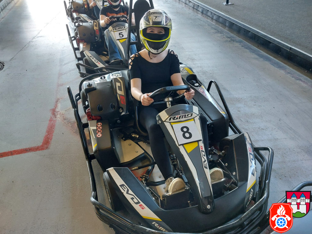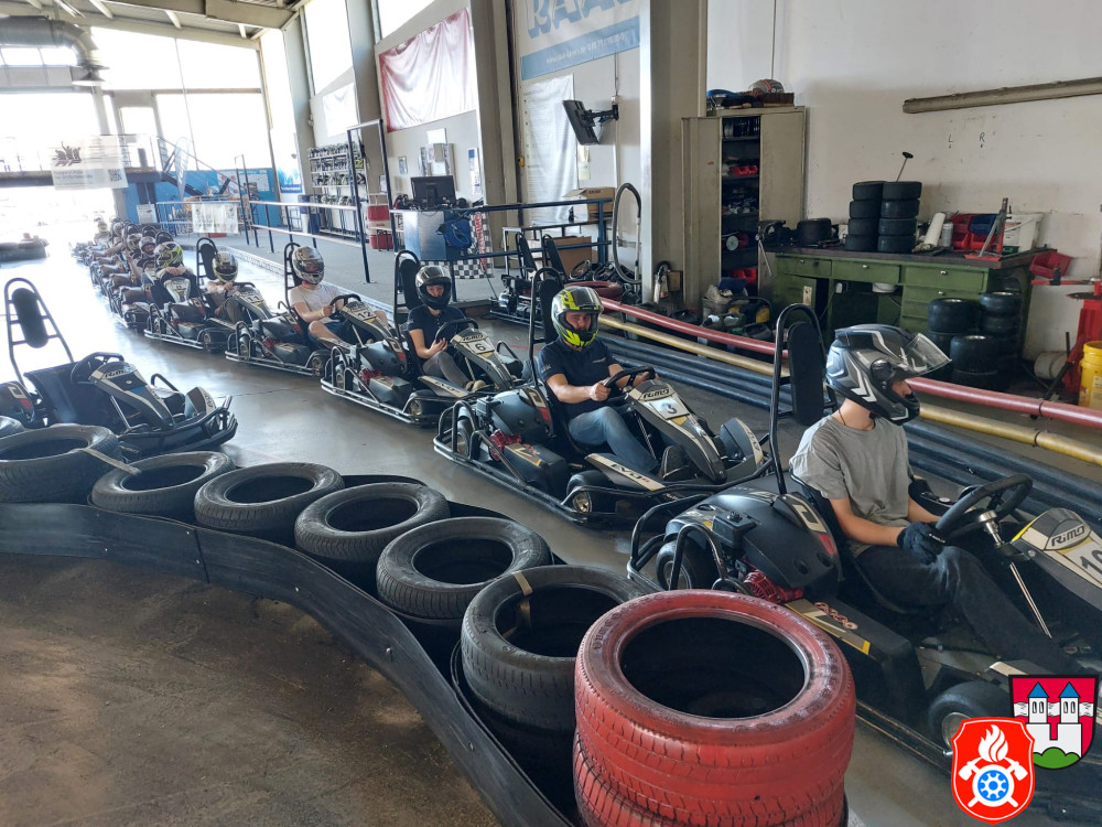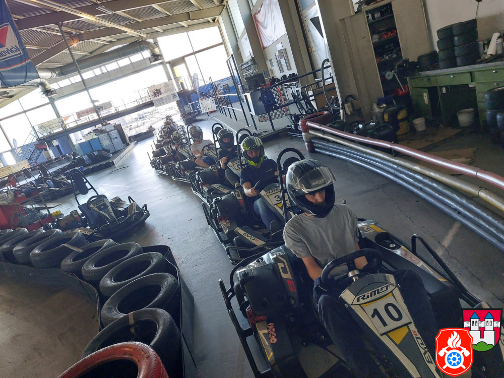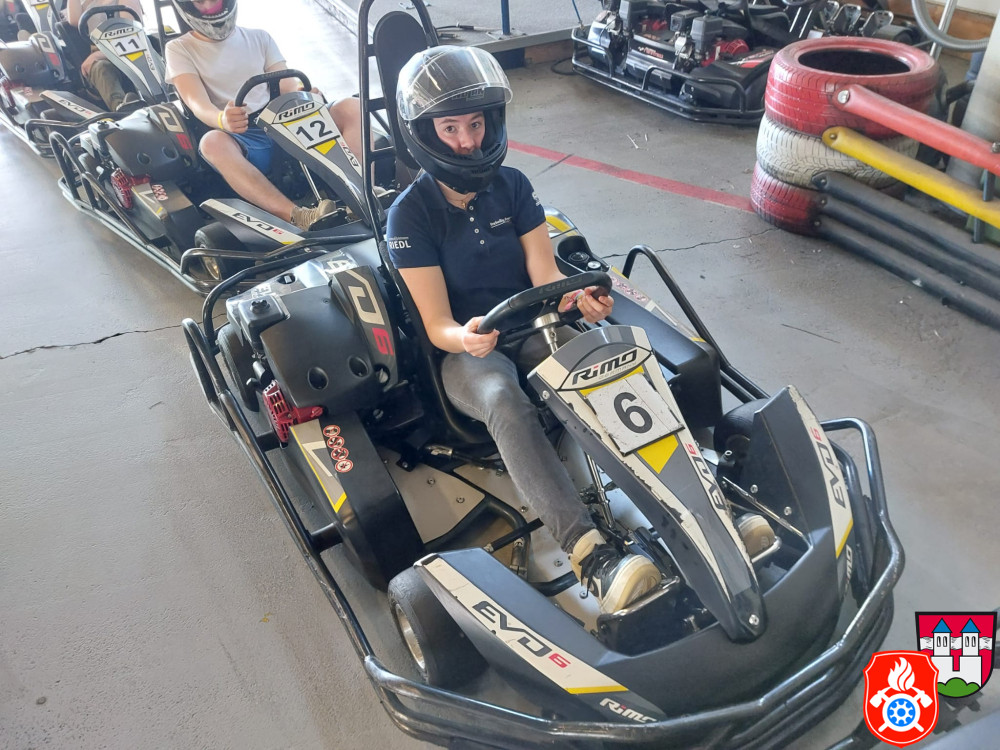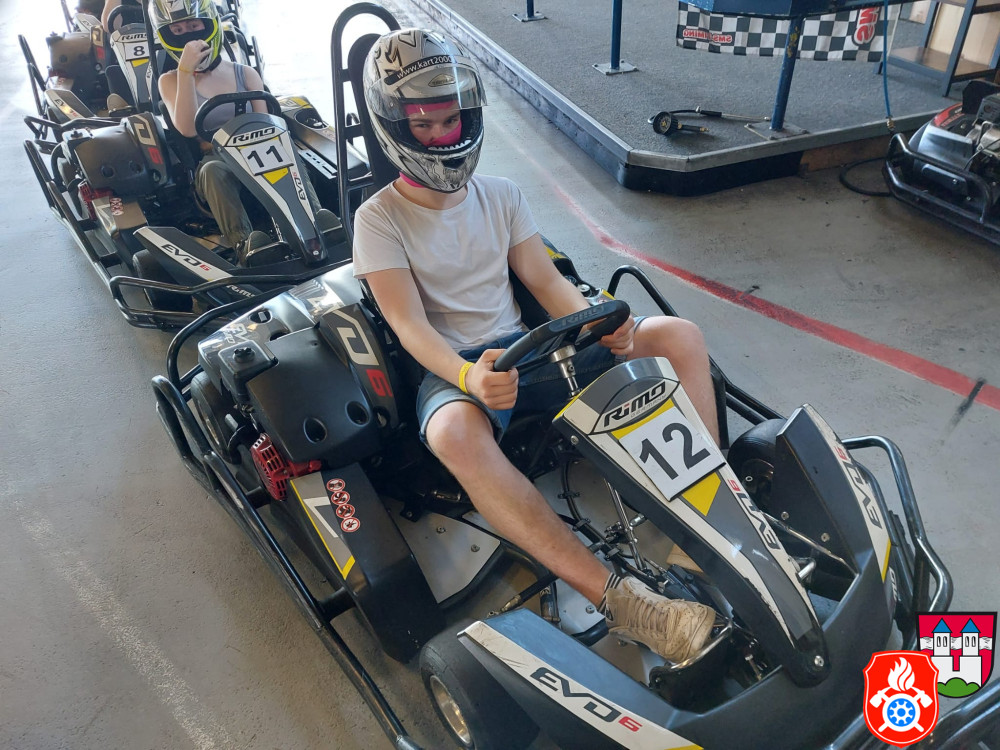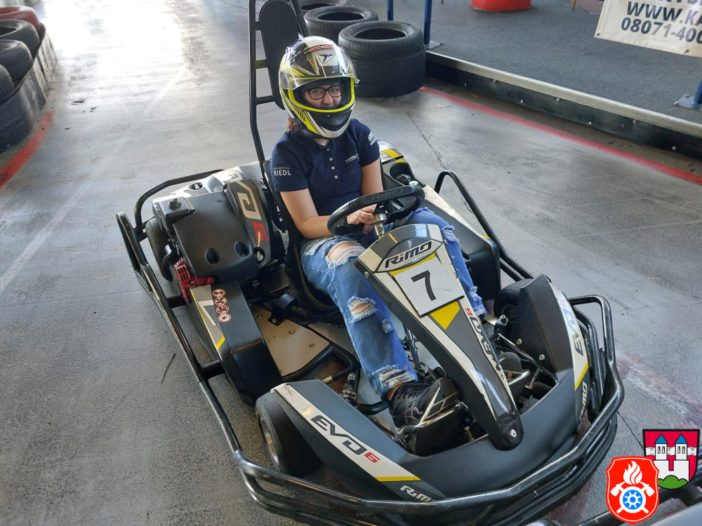 Dort wurden wir mit Sturmhaube und Helm ausgerüstet. Nach einer kurzen Einweisung gings auch schon los auf die Rennstrecke. Für ca. 50 min hatten wir die Bahn für uns. Nach einem spannenden Rennen, erzielte unser 1. Jugendsprecher Philip den ersten Platz. Dicht gefolgt von unserm Jugendwart Georg. Den 3. Platz absolvierte Anna W. Ein Teil der Gruppe war das erste Mal auf einer Kartbahn. Dies war jedoch nach der Anfangsrunde nicht weiter erkennbar. Alle hatten sehr viel Spaß und gaben gut Gas