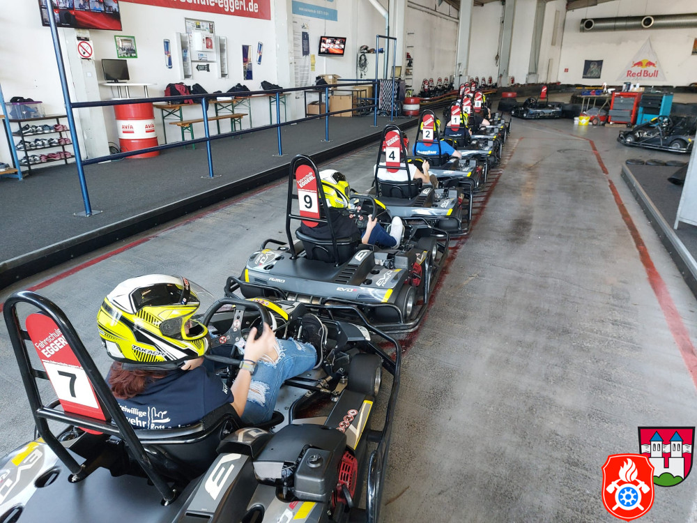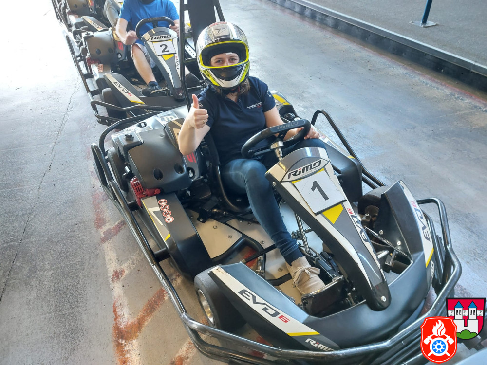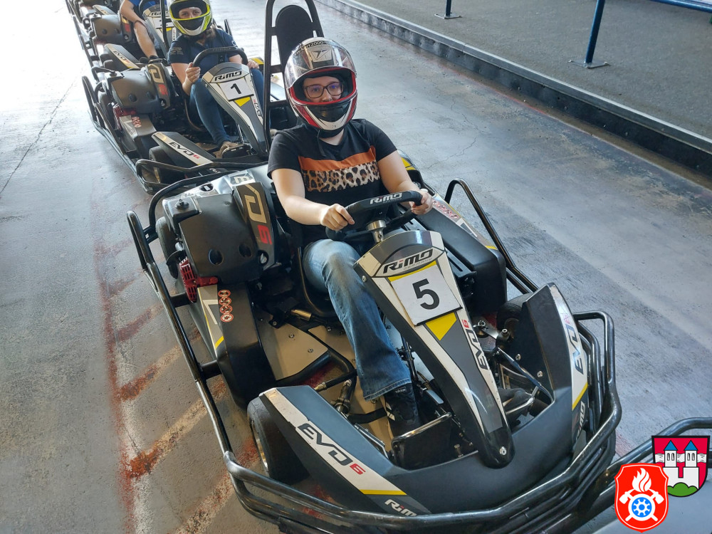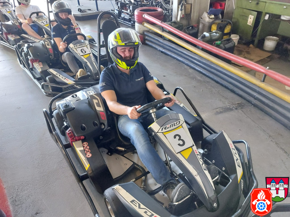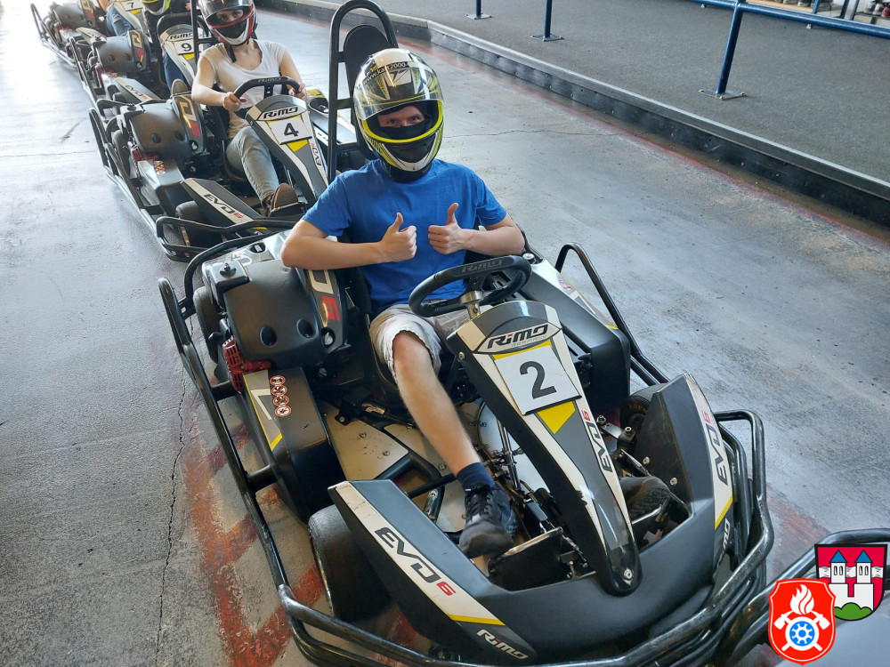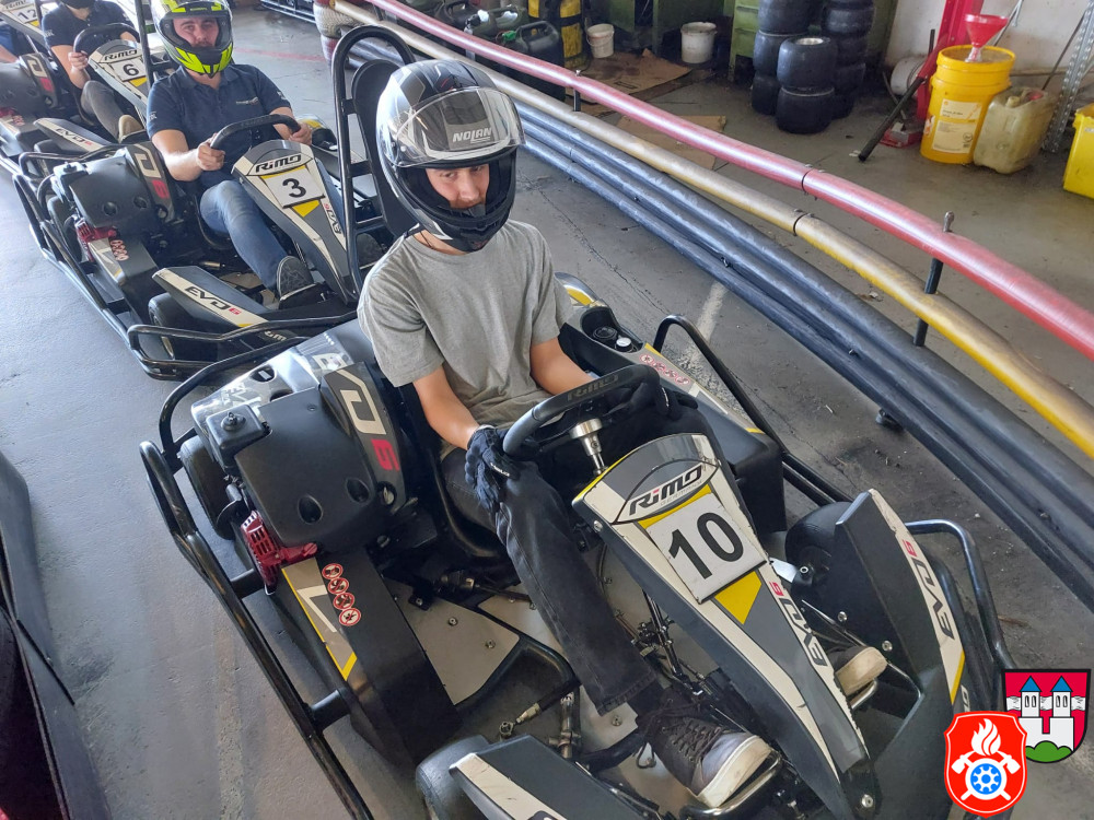 Dort wurden wir mit Sturmhaube und Helm ausgerüstet. Nach einer kurzen Einweisung gings auch schon los auf die Rennstrecke. Für ca. 50 min hatten wir die Bahn für uns. Nach einem spannenden Rennen, erzielte unser 1. Jugendsprecher Philip den ersten Platz. Dicht gefolgt von unserm Jugendwart Georg. Den 3. Platz absolvierte Anna W. Ein Teil der Gruppe war das erste Mal auf einer Kartbahn. Dies war jedoch nach der Anfangsrunde nicht weiter erkennbar. Alle hatten sehr viel Spaß und gaben gut Gas