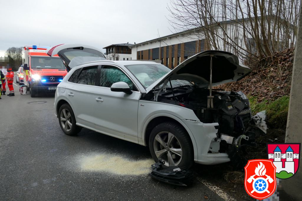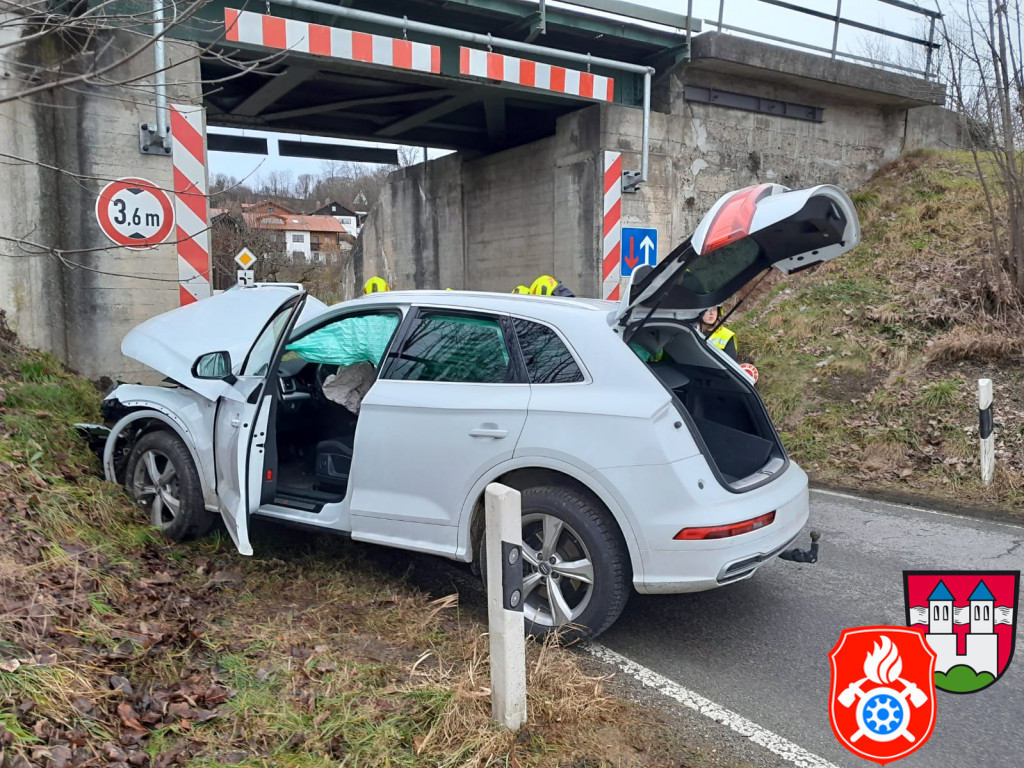Verkehrsunfall bei Katzbach. PKW gegen Bahnunterführung.