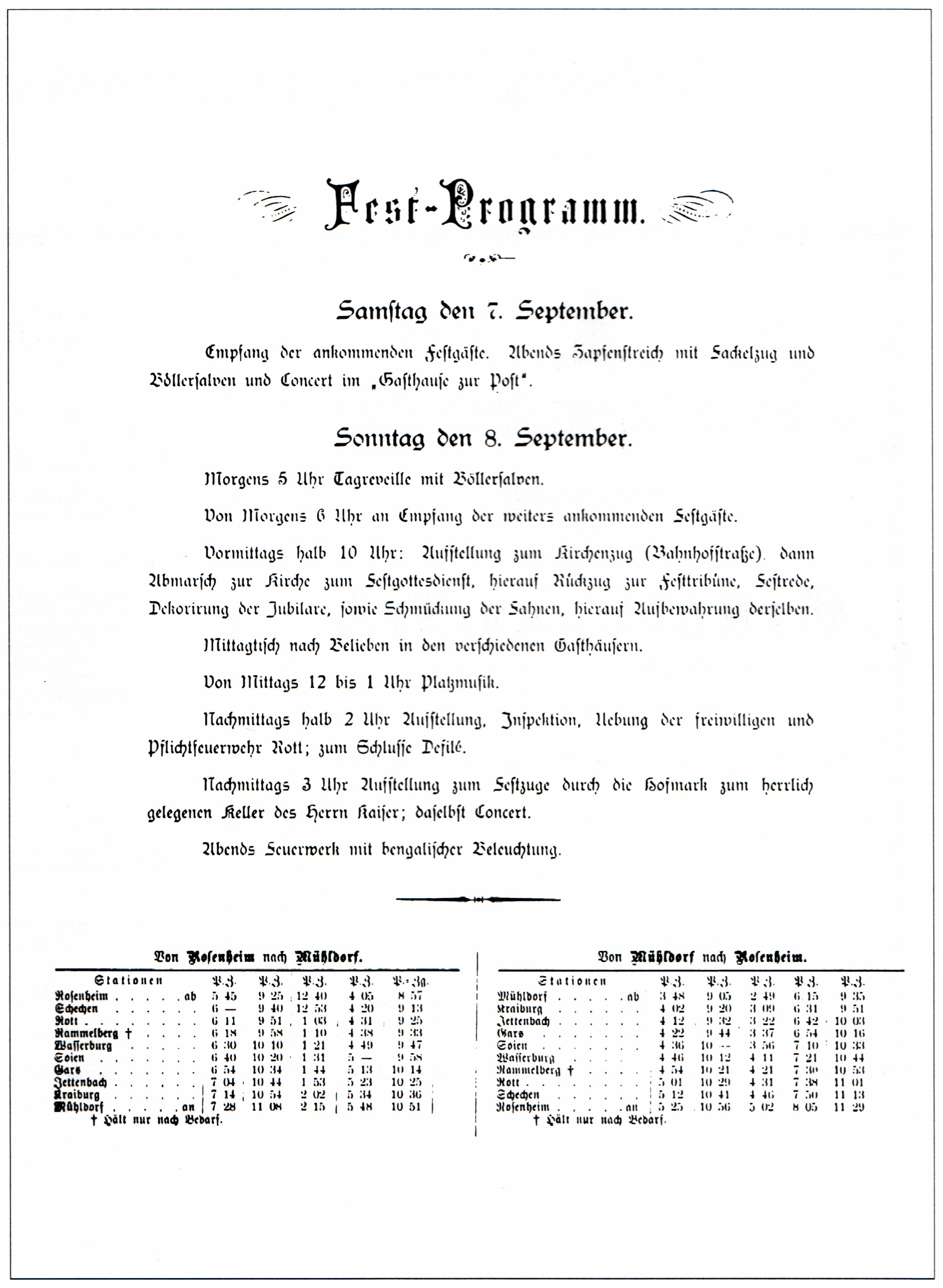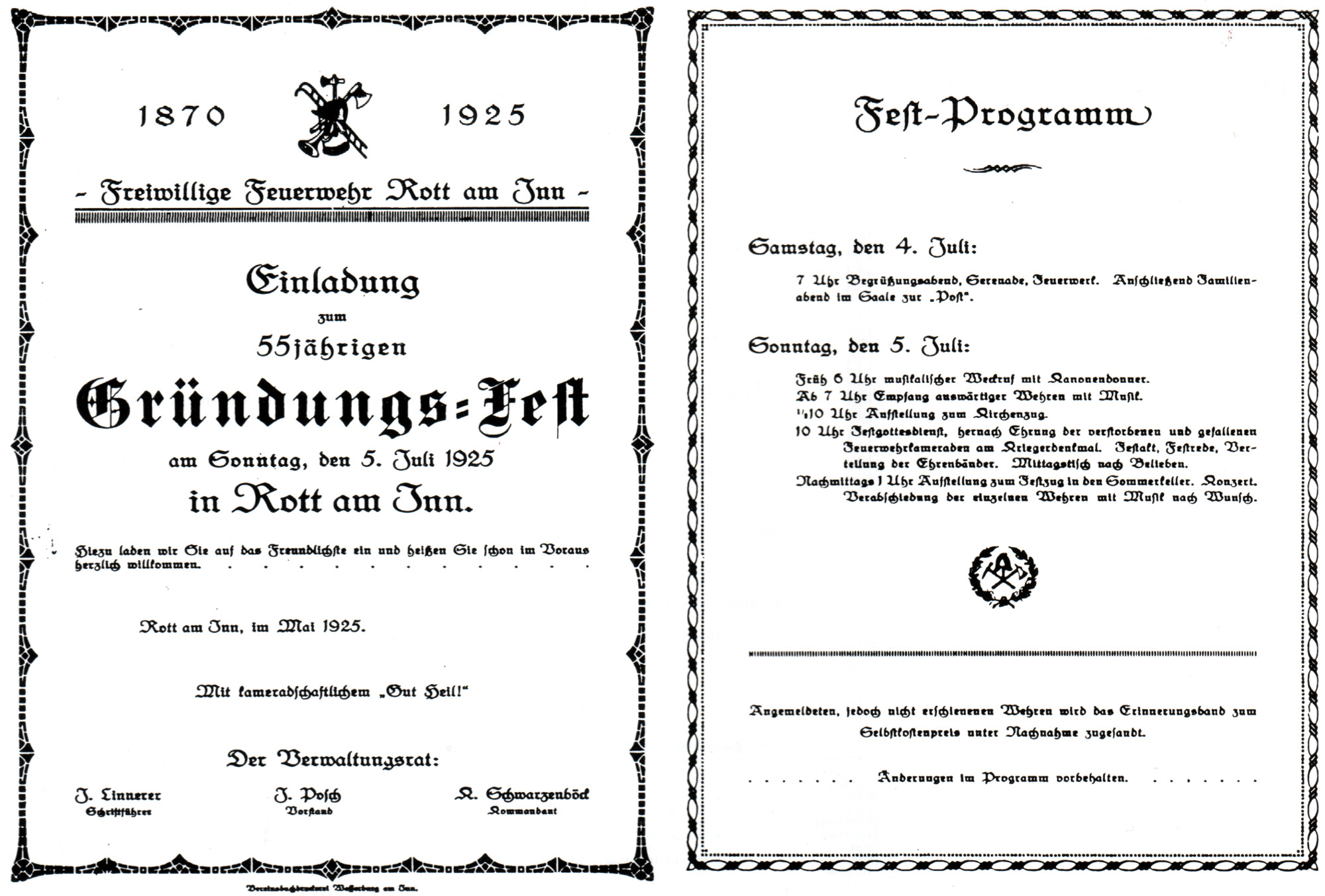Am gleichen Tage wurde der Bezirksfeuerwehrtag ebenfalls in Rott abgehalten, wobei die Wehren von Edling, Farach, Romelberg und Rott inspiziert wurden.
