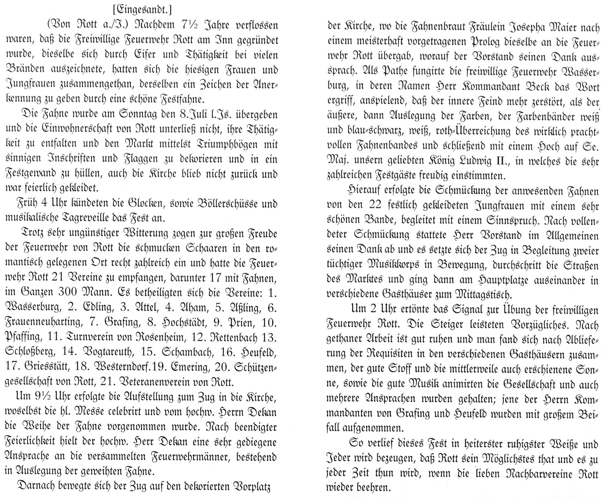 Hier finden Sie einen alten Zeitungsbericht zur Fahnenweihe 1877